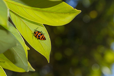 11月下旬、マテバシイの葉裏にいる、大きな赤い昆虫を発見。真下まで行ってよく見ると、それはオオキンカメムシ。僕は生態を良く知らないので、調べてみたところ、南方系の昆虫で、日本が生息域の北限になるらしい。常緑樹の葉裏で集団越冬するとも書かれているが、この個体はたった一匹で越冬している。仲間から、はぐれてしまった個体なのかもしれない。日当たりの良い場所にいるのに、全く動かったので、死んでいるのかとさえ思っていったが、つい最近、少し奥へ入り込んだ。春が来るまでもう少し、ここで休んでいきなさい。